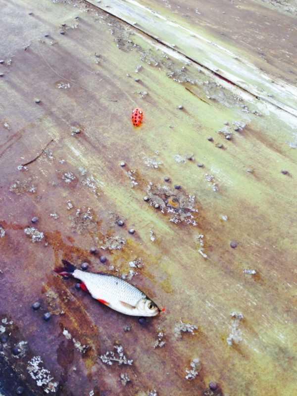 Это чудо я приобрел у Виктора в феврале и уже руки чесались побыстрей его искупать. И каково же было для меня удивление, когда я пришел и сразу начал ловить плотву и красноперку. Рыбка хоть и брала очень нежно, поклевки почти невидно, то есть заглатывала приманку и стояла на месте, но иногда проскакивали легкие удары в руку. Размер рыбки был в районе ладошки и больше, несколько ветруг(большая плотва) грамм по 200-250. Всего где-то за 3 часа было поймано около 5 десятков. Ловил на белый мухомор и живой мотыль, проводка легкие поддергивания с паузой 10-15 сек. Удовольствие от первого знакомства с приманкой просто зашкаливало. Кроме замечательной рыбалки тяжело не забыть удивленные глаза рыбаков, которые в это время в метре стояли от меня с ходовками на мотыль и у них по 0 совсем, ни одной поклевки, что они только не делали, забрасывая свои снасти прям на место, где булькал мой поппер), а у меня, что не заброс, то спин изгибаеться).