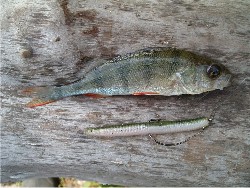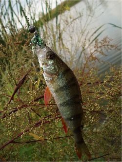 Из-за того, что рост у Юма был 8см, а дополнительная огрузка, кроме крючка не использовалась, он очень медленно опускался на дно, пока ему не встретилась стая крупных окуней. Первым разговор начал именно он: